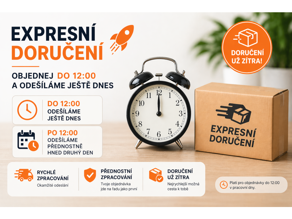 Objednej do 12:00 a tvoji objednávku odešleme ještě dnes.