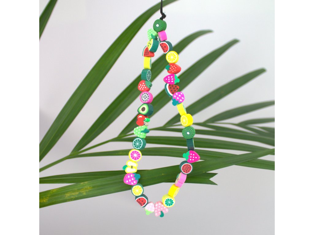 Originální přívěsek či náramek na mobilní telefon, který je vyrobený s celou řadou prvků, jako jsou smajlíci, ovoce, květiny, perly apod. Náramek je tak univerzální, že se bude hodit ke všem různým barvám a motivům krytů.
