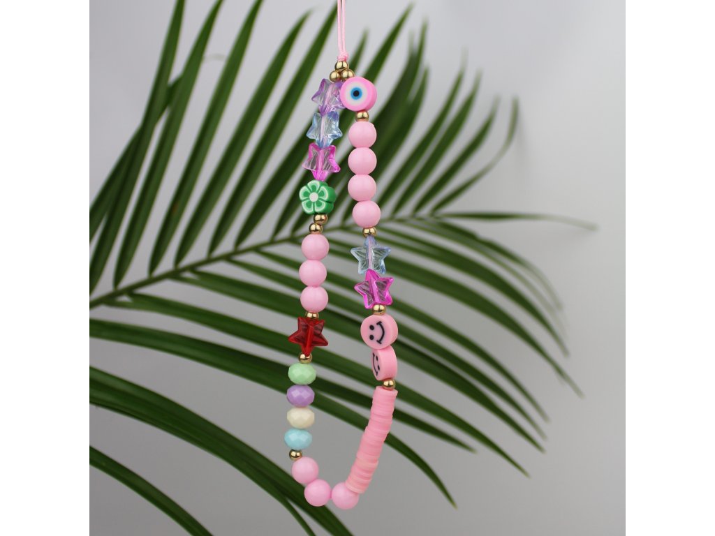 Originální přívěsek či náramek na mobilní telefon, který je vyrobený s celou řadou prvků, jako jsou smajlíci, ovoce, květiny, perly apod. Náramek je tak univerzální, že se bude hodit ke všem různým barvám a motivům krytů.